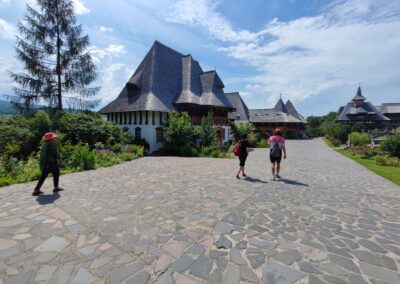 In Borșa, our group appreciated the natural scenery and attended a traditional music festival, which showcased local culture and heritage. After visiting the monastery in Bârsana, we stopped by Breb, known for its craftsmen and artisans. There, we met Mrs. Maria, who showed us the wool spinning process, providing insight into another aspect of traditional craftsmanship. We also visited woodworkers who make wooden roof tiles and an artisan who crafts baskets. A visit to the Mecles family’s mill in Săcel expanded our understanding of local artisanal practices. Additionally, touring several monasteries and the famous Merry Cemetery enhanced our appreciation of the region’s historical and cultural context. An informative workshop on sustainable material dyeing and conservation, led by Dr. Florica Zaharia and Irina Petroviciu, added to our understanding of traditional crafts and their modern applications. A visit to Sighetu Marmației, including The Memorial of the Victims of Communism and The Elie Wiesel Museum, deepened our understanding of the region’s complex history.